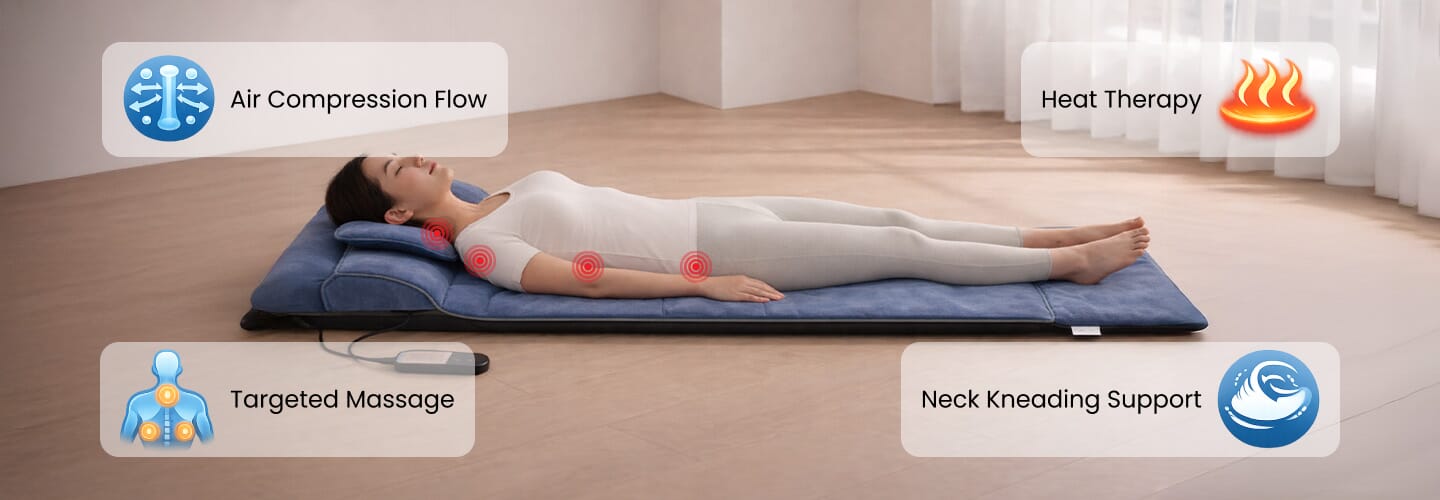 With adjustable pressure settings and multiple massage modes, you can tailor every session to your comfort level and needs. Targeted massage zones focus on specific body areas, while full-body coverage creates a balanced, relaxing experience from head to toe—ideal for recovery, stress relief, and bedtime wind-down routines.