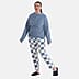 Styled By- Set of 2 - Long Sleeve Top - Checkered Pattern Pyjama Set (Size - S-M) - Blue - White