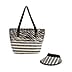 Two-Piece Set - Beach Ready Nautical Style Striped Tote Bag - Hallow Top Sun Hat - Red