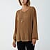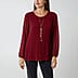 Chilli Charm Pleated Long Sleeve Necklace Top (One Size 8 - 18) - Wine