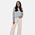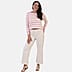 Sugar Crisp Italian Made Round-Neck Colour-Block Stripe Roll-Sleeve Top One-Size (Fits upto Size 18) - Pink