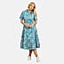 Mudflower 100% Cotton Floral Print Collared Midi Dress (Size 10) - Teal