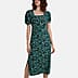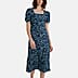 Paramour Animal Print Square Neck Midi Dress with Puff Sleeves (Size 12) - Navy