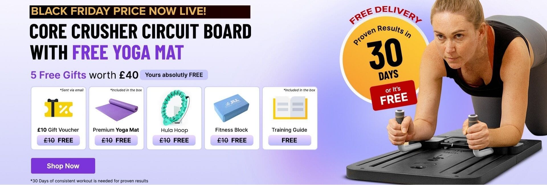Core Crusher Pilates Board with Yoga Mat & FREE Gifts Worth £40