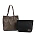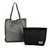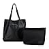 2-in-1 Genuine Leather Tote Bag - Pouch - Black