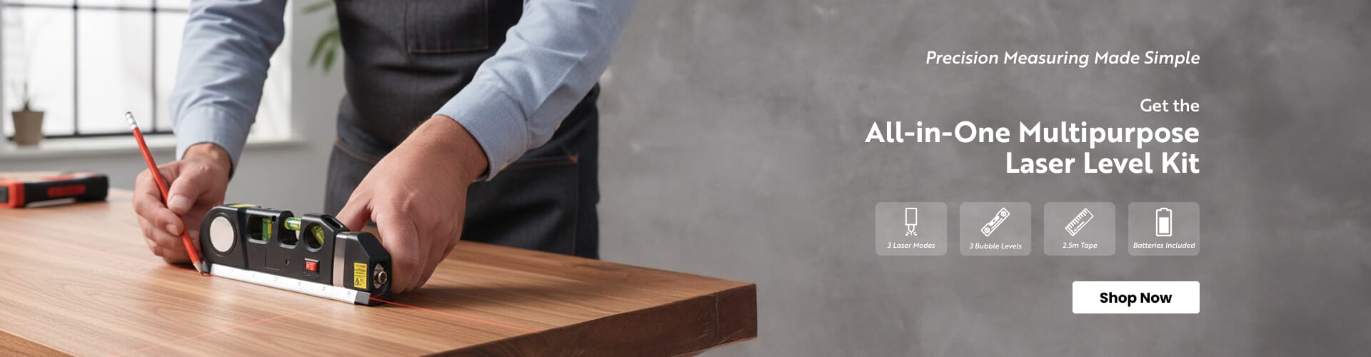 Multipurpose Laser Level Kit - 3 Laser Modes, 3 Bubble Levels, 2.5M Tape, Batteries Included - Black