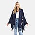 - Maisi Embroidered Tassel Batwing Sleeve Relaxed Drape Poncho (One Size) - Pink