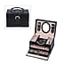 3 Layer Lizard Skin Pattern Jewellery Box with Inside Mirror and Button Lock - Black