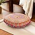Enjoy a soft and comfortable sitting with this embroidered floor cushion. This round shape cushion is made from cotton and has cotton filling inside it to give a warm and soft feel. This cushion has embroidered patterns all over it and is studded with pom pom balls detailing on the edges giving it an aesthetic touch. Give a boost to your health with this cushion as it helps to improve your posture and relaxes your body, best for doing yoga or while sitting and meditating. Make your flooring look more colourful with this cushion.