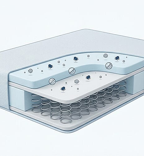 • UV-C light kills mites and eggs.