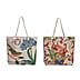 Set of 2 Flamingo - Bird Print Jute Tote Bags with Rope Handles - Beige