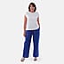Get some cool and comfy vibes with our linen-rich loose-fit trousers. It is made from viscose and linen blend fabric. The trousers feature two side and back pockets, tapered legs and an elasticated waistband with a drawstring. Style these ankle pants with a t-shirt or a pullover top for some comfy, light and fresh feel.