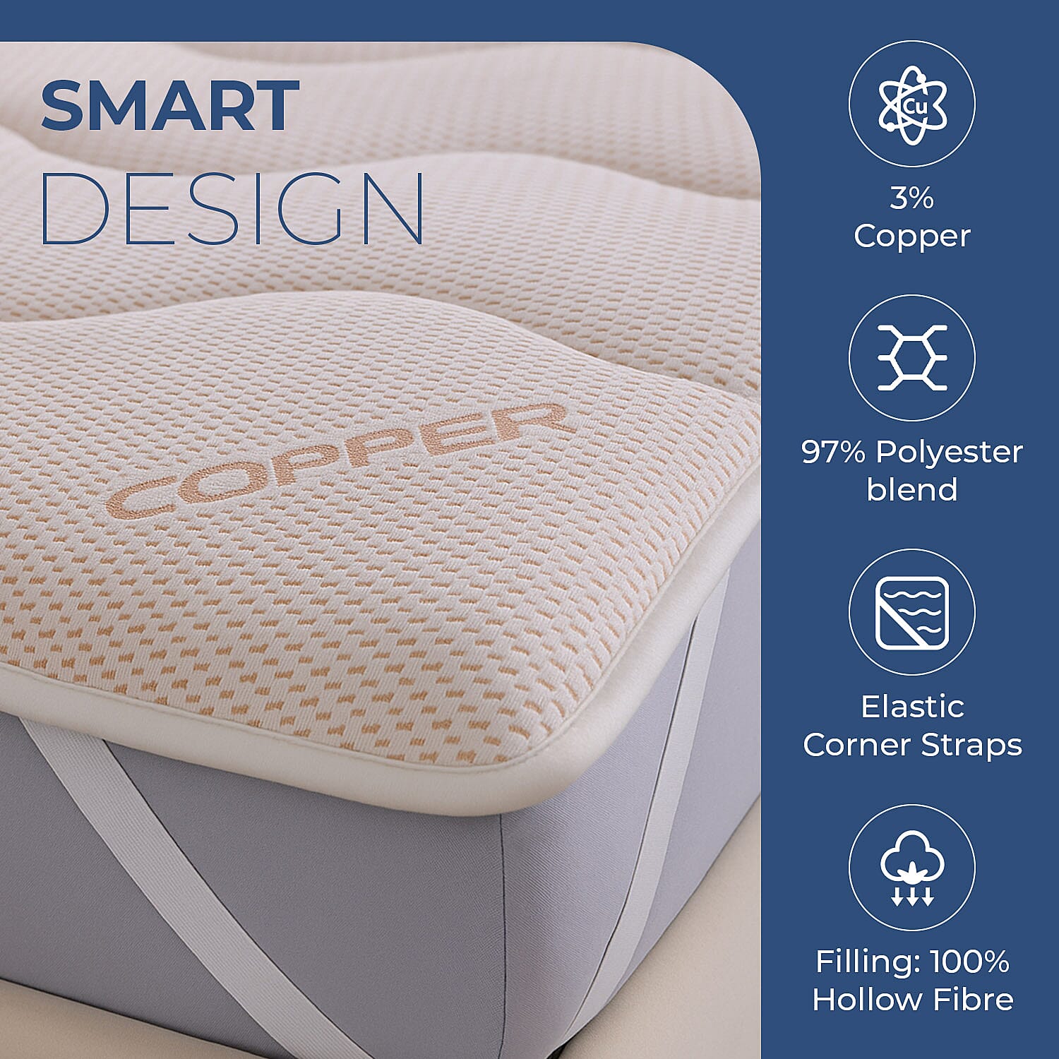 Anti-Bacterial Copper Infused Jacquard Mattress Topper (Size Single) - White