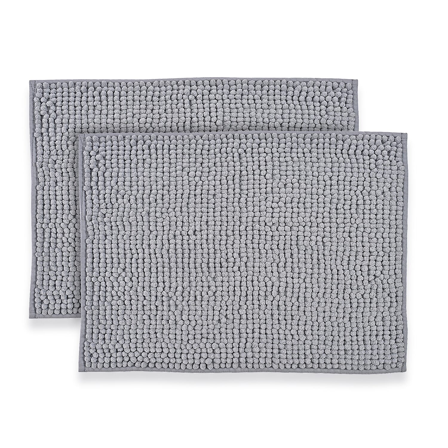 Set of 2 Super Soft Chenille Bath Mats (40 x 60 cm) - Silver