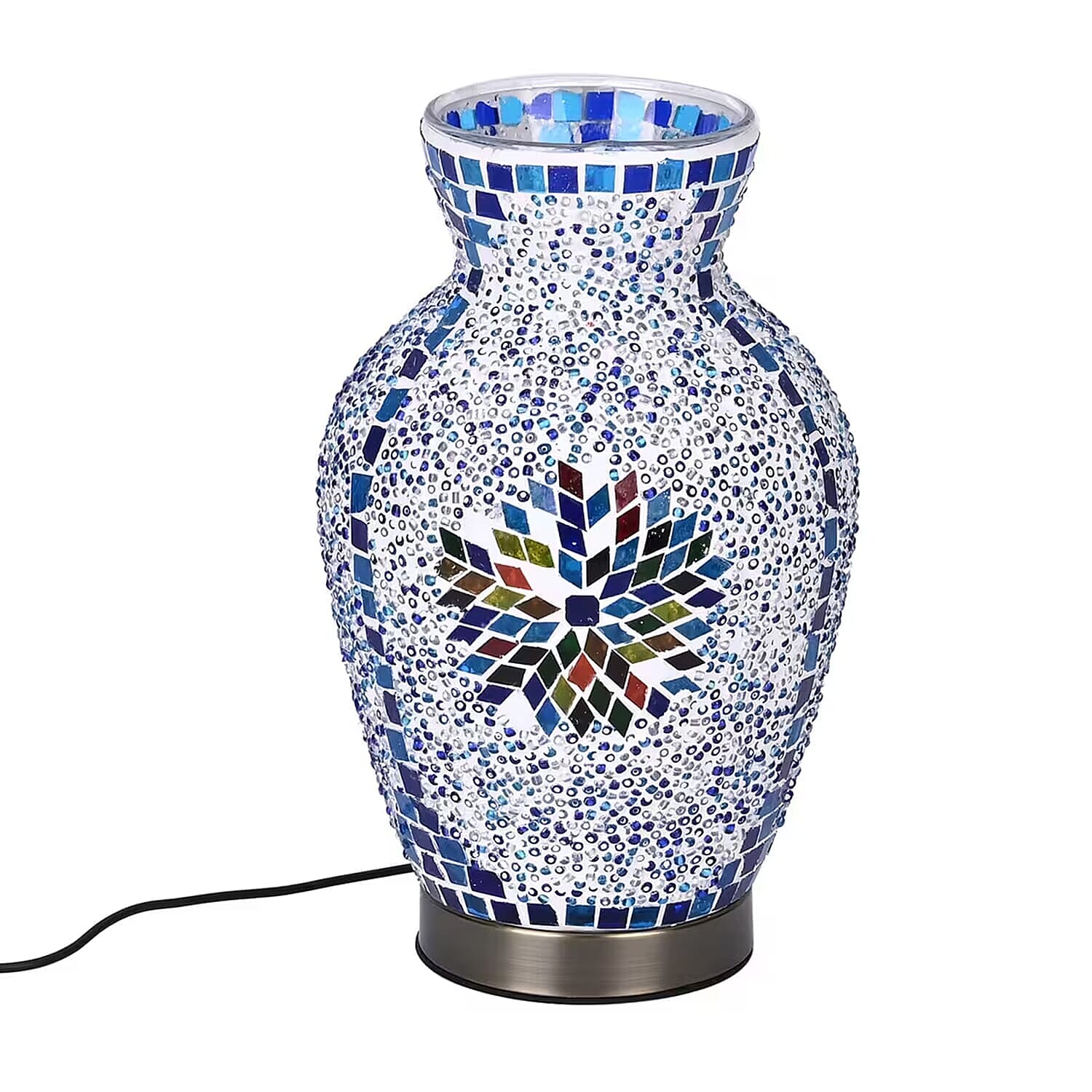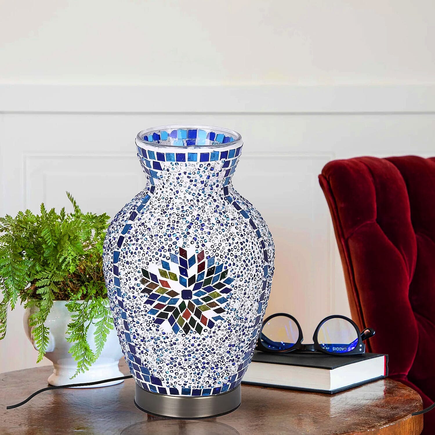 Moroccan Style Mosaic Vase Table Lamp - Blue with LED Light (USB Powered)