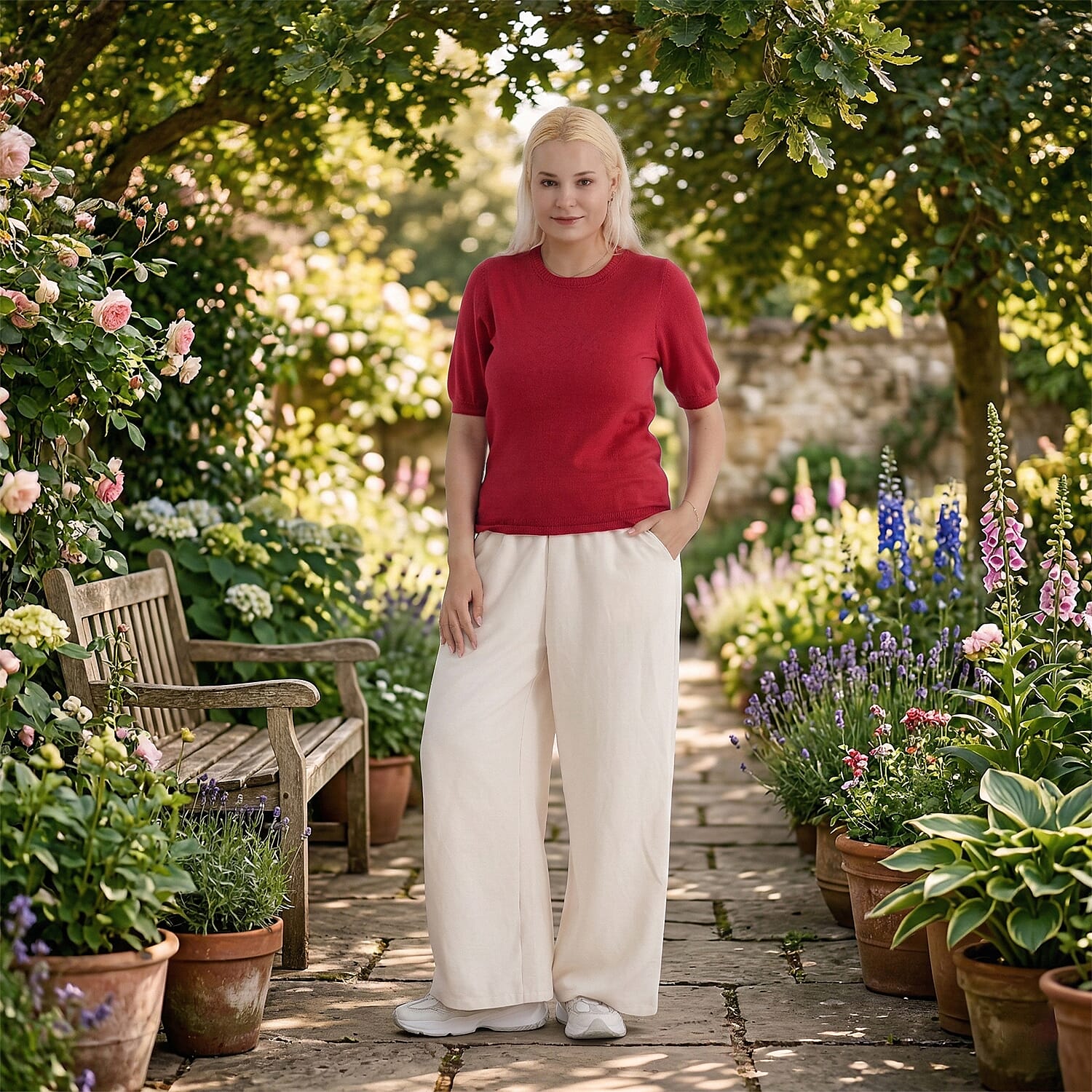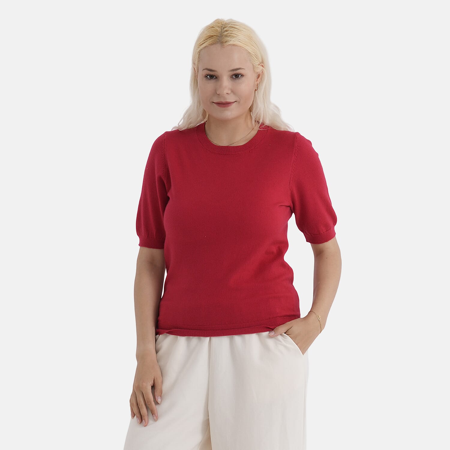 & Maisi Round Neck Short-Sleeved Top (Size S/M) - Red