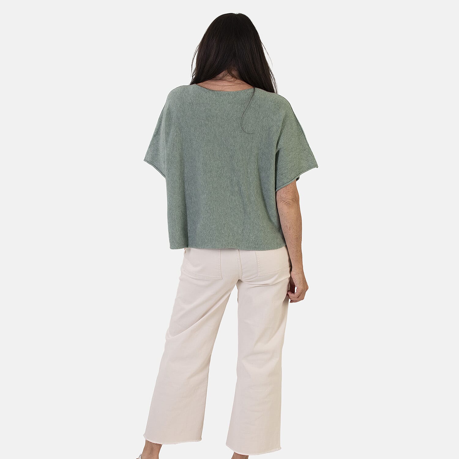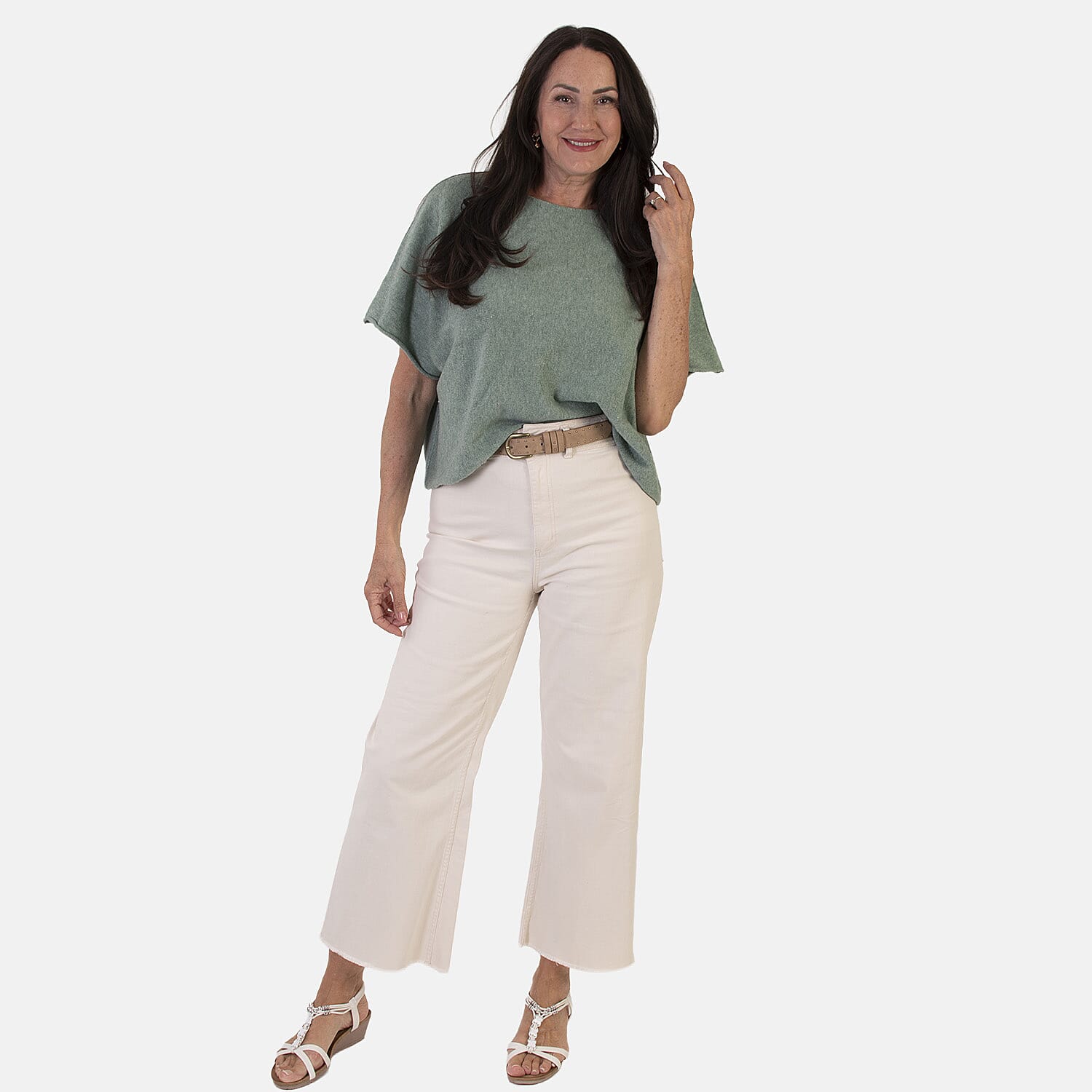 Sugar Crisp Italian-Made Batwing Sleeve Round Neck Top (One Size) - Sage Green