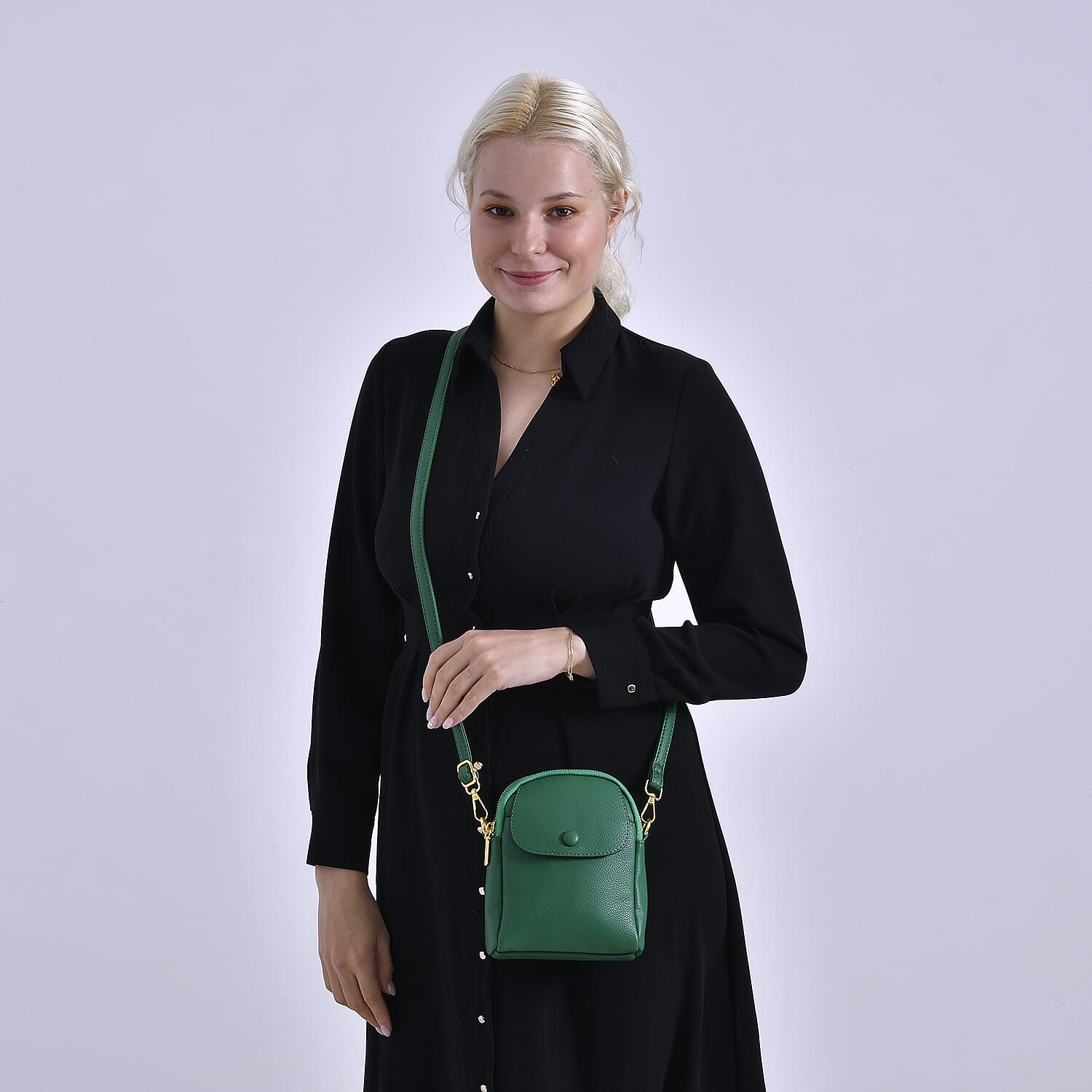 Leatherette Crossbody Bag with Detachable Shoulder Strap - Green