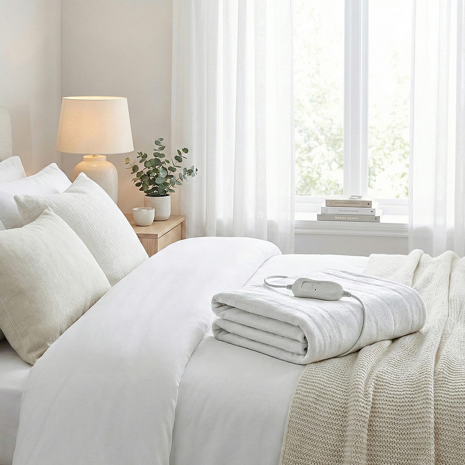SEASONS BEST CLEARANCE OFFER - Supersoft High Quality Electric Heated Cosy HYBRID blanket (Size King/Double) - White 142X150 CM