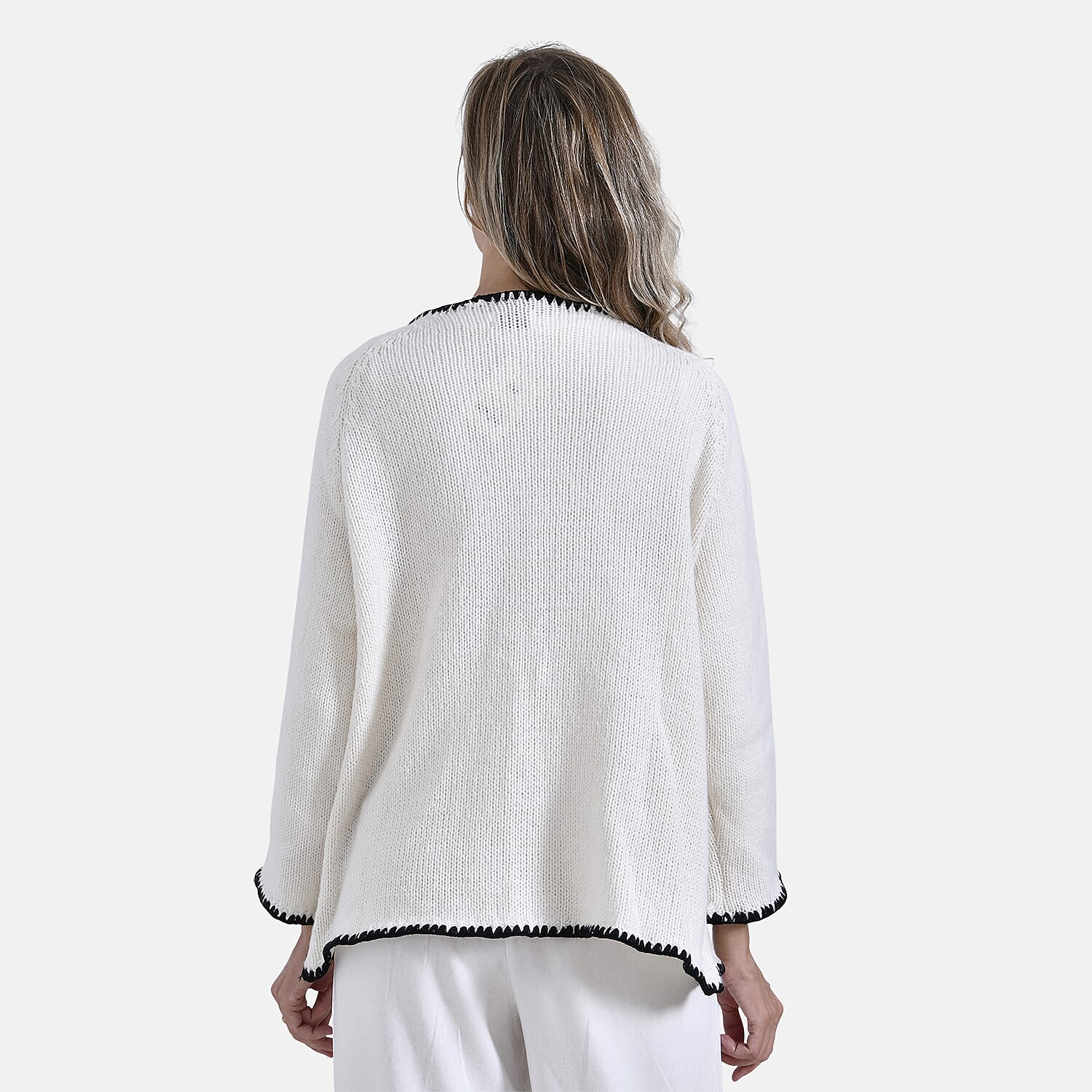 MISS IT - MISS OUT - & Maisi Crew Neck Cardigan with Contrasting Trim (One Size) - Black & White