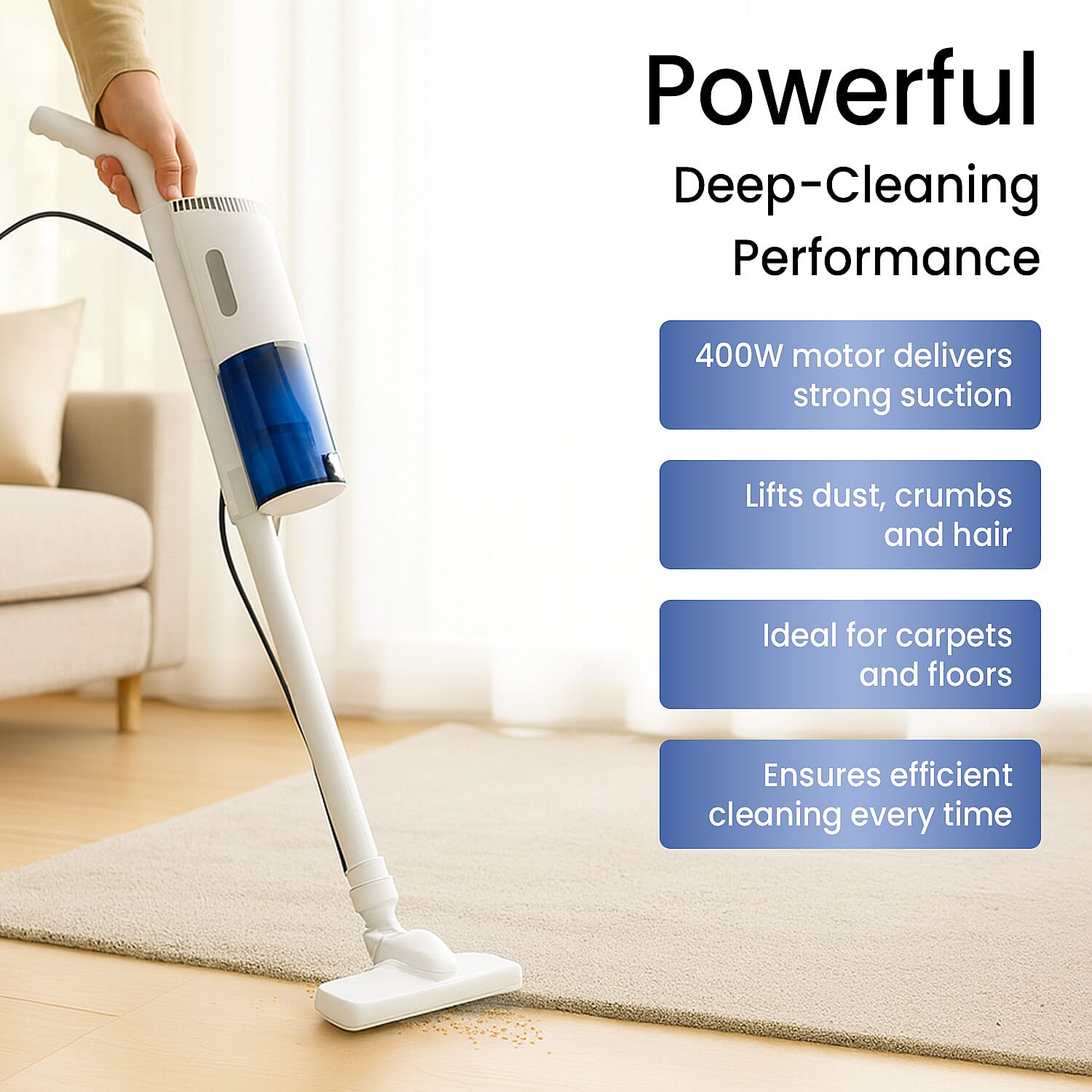 Handheld Vacuum Cleaner with Dust Tank Storage Capacity and HEPA Filter (400W) - White